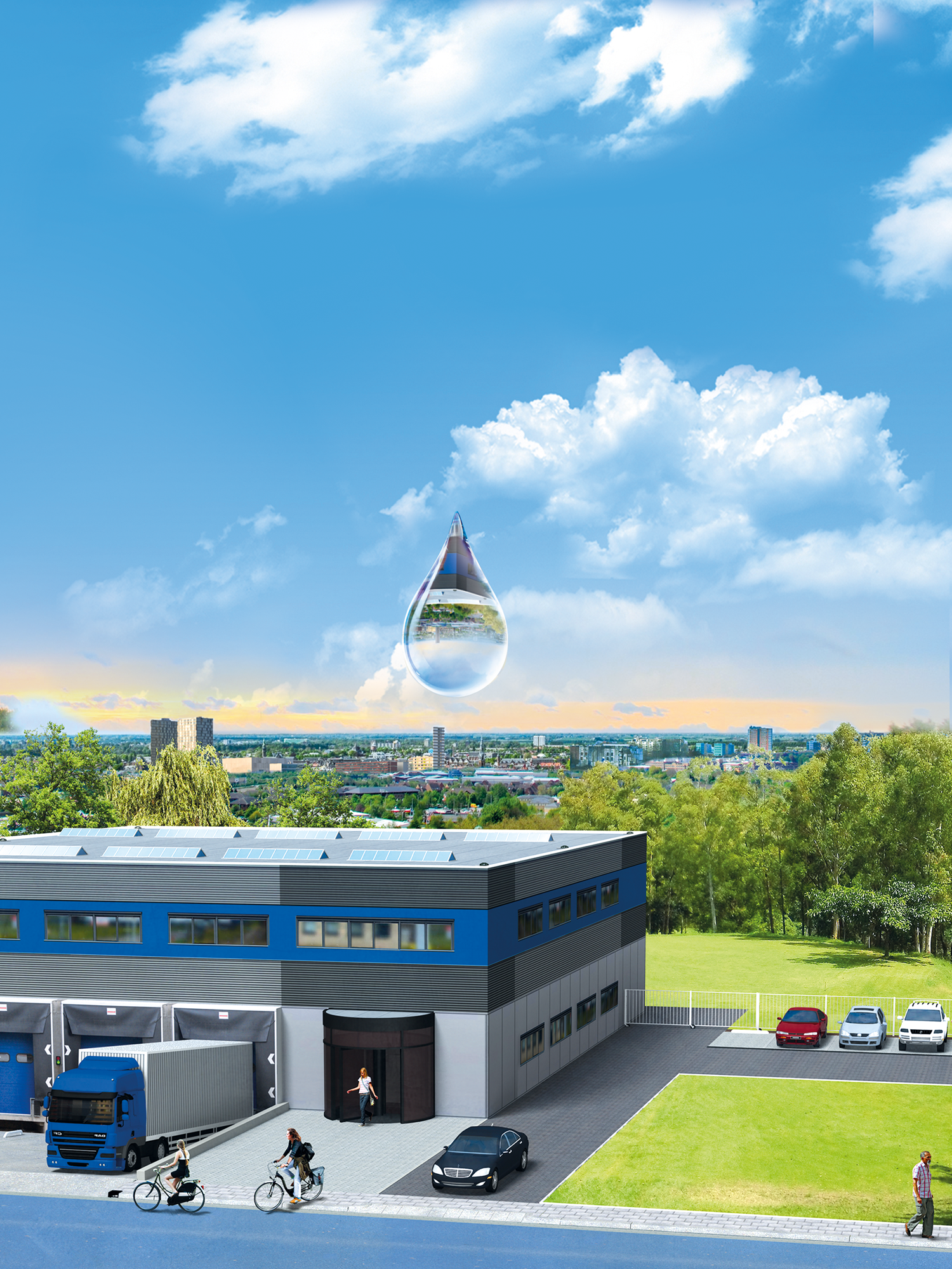 Grote distributiecentra verrijzen tegenwoordig als paddenstoelen uit de grond. “Traditionele HWA-systemen zijn in veel gevallen niet geschikt voor dergelijke gebouwen,” zegt Hugo. “In veel gevallen wordt een volvulsysteem toegepast, een systeem dat met kleinere leidingdiameters versneld water kan afvoeren van een dak. Een win-winsituatie, want het scheelt in de kosten en het dak is eerder vrij van regenwater.” Een dergelijk volvulsysteem dat het water als het ware van het dak slurpt volgens de wetten van de natuurkunde, heet bij DYKA Vacurain. “Behalve kleinere leidingdiameters hoeven er ook minder standleidingen en grondleidingen toegepast te worden. In plaats van meerdere grotere diameters standleiding volstaat vaak één kleinere standleiding. De focus met Vacurain ligt de laatste jaren op grote DC’s, maar het systeem wordt al sinds jaar en dag toegepast in de utiliteit en bij grote(re) appartementcomplexen met relatief veel dakoppervlak.”