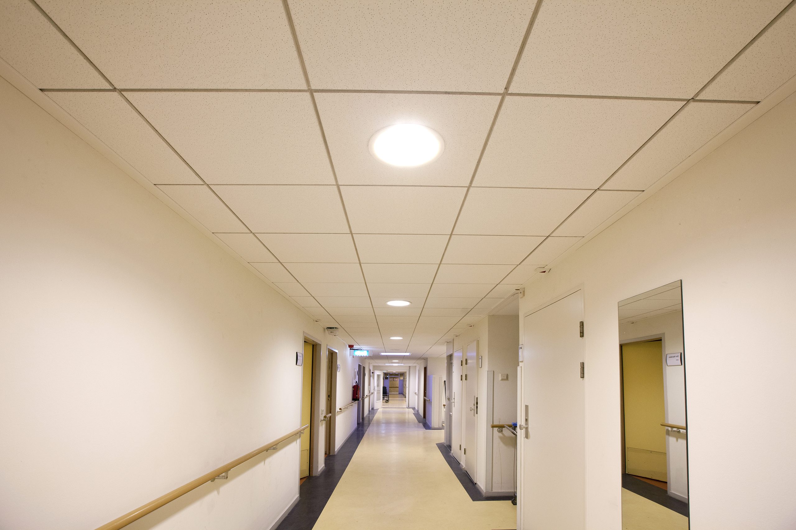 Naast de Prefab Units en Products biedt Faay ook een brandwerend plafondsysteem in de vorm van het 2Resist ceiling system aan. “Dit uitneembaar en herplaatsbaar plafond is ook na verplaatsing gegarandeerd brandwerend. Het 2resist ceiling system is een flexibel plafondsysteem met een uitzonderlijk hoge brandwerendheid. Dit product is in verschillende uitvoeringen verkrijgbaar en biedt een brandwerendheid van één tot twee uur en is geschikt voor zowel nieuwbouw als renovatie. De brandwering van dit product zit in één lijn met de systeemplaten en is eenvoudig uitneembaar, zodat er met leidingen geschoven kan worden. Voor ziekenhuizen is dit erg handig. Als er bijvoorbeeld een MRI-scanner van de ene naar de andere kamer verhuisd moet worden, kunnen de stroomvoorzieningen e.d. die boven het systeemplafond zitten eenvoudig aangepast worden. Daarnaast worden er een hoop kosten bespaard, omdat niet elke vertrek opnieuw brandwerend hoeft worden afgewerkt. De brandwering zit al ter hoogte van de plafondplaten. Het is een kwestie van de plafondplaten terug plaatsen, en je hebt ze weer brandwerend afgeschermd.