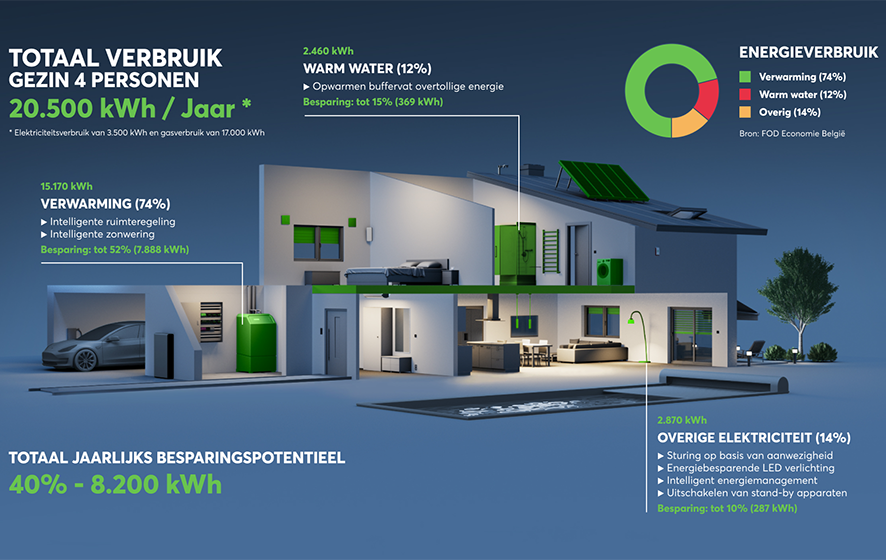 Loxone verbindt dus alle componenten in een slim gebouw. Talrijke open interfaces maken het systeem oneindig flexibel. Dit maakt een wereldwijd uniek, alomvattend energiebeheer mogelijk en opent talrijke mogelijkheden om energie te besparen. Wouter: “Andere aanbieders praten erover, wij hebbjasoen een werkende oplossing voor elk project en elke vereiste. En al onze gebruikers profiteren altijd van de nieuwste functies die we periodiek en geheel kosteloos updaten.”