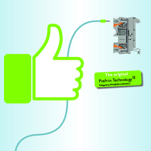 Met de push-in-aansluittechniek van Phoenix Contact kunnen elektrische installaties van het veldniveau tot en met de besturing eenvoudig en zonder gereedschap worden aangesloten. De push-in-aansluittechniek werkt volgens het veerdrukprincipe: de ader wordt direct ingestoken, zonder dat de aansluiting eerst geopend hoeft te worden. Door het specifieke ontwerp van de veer van hooggelegeerd staal die de ader tegen de stroombalk drukt, zijn er slechts geringe insteekkrachten nodig om de ader aan te sluiten.