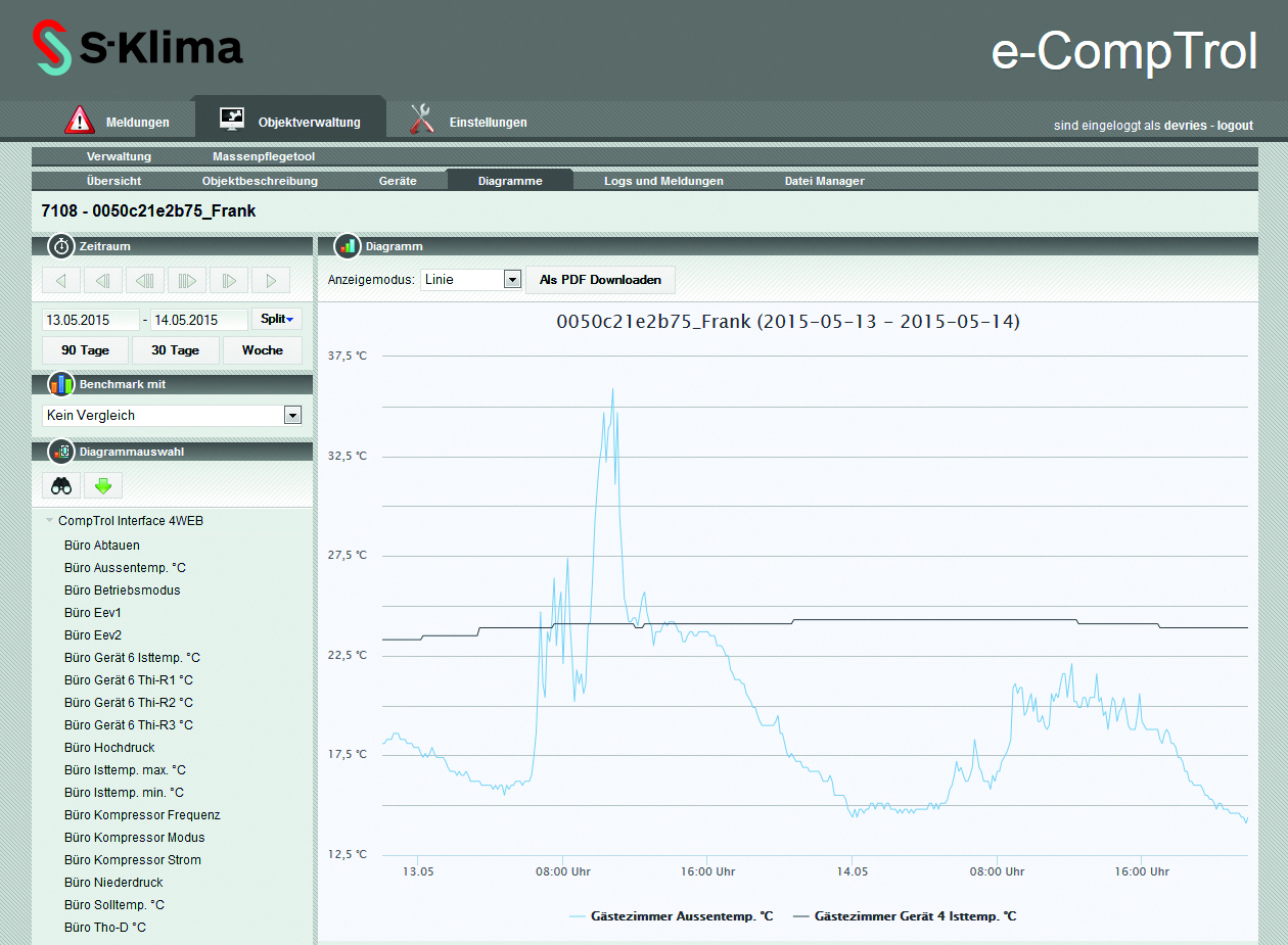 Dennis: ‘E-CompTrol staat voor klimaatbeheersing en monitoring op afstand. In gewoon Nederlands: alle relevante data, zoals temperaturen en drukken, worden voor een onbeperkte tijd opgeslagen op onze beveiligde server. Kortom, alle waarden die je als servicemonteur wil zien, zijn inzichtelijk. Uiteraard is alles te automatiseren, door het intelligente besturingssysteem van de CompTrol interface 4web of de CompTrol ZLT 2. Met name binnen apotheken, ziekenhuizen, bejaardentehuizen en drogisterijen is een bepaalde temperatuur gewenst. Dat kan te maken hebben met de opslag van medicijnen, maar ook met ruimtes waar in basis niemand verantwoordelijk is voor het regelen van de temperatuur, zoals een gezamenlijke woonkamer. Door dit te automatiseren wordt onnodig energieverbruik vermeden en toch een comfortabel klimaat bereikbaar.’