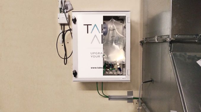 De soil loving organismen (gunstige bacteriën) geraken vanuit de volle natuur niet meer in een gebouw. Enerzijds door de gesloten bouwschil, maar anderzijds door de luchtfilters in de ventilatie-eenheden. TakeAir heeft een techniek ontwikkeld om deze organismen binnen in een gebouw te brengen. Pannecoucke legt uit: “We kweken de gunstige organismen gecontroleerd op in ons labo. Deze worden in een baxter of infuus verpakt en aangesloten aan de luchtkanalen. De geautomatiseerde verstuiving wordt via IoT gestuurd. Wij verrijken als het ware de sterk gefilterde lucht die het gebouw binnen komt en evenaren zo de gunstige boskwaliteit. Op die manier wordt een natuurlijk afweersysteem gecreëerd tegen de potentiële pathogenen en is er minder ruimte voor minder gunstige organismen. De sturing houdt rekening met de grootte van de ruimte, het aantal aanwezige personen, enz. De mensen kunnen op een aangename manier van de ruimte genieten.”