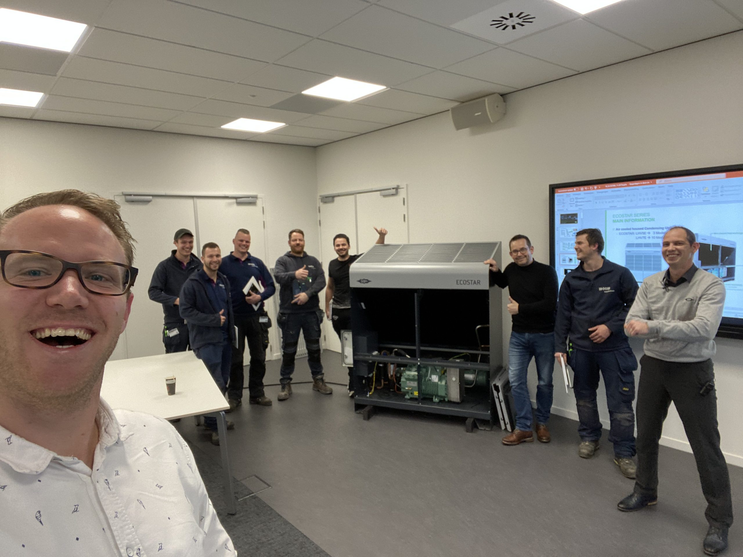BITZER Benelux heeft recent met succes een training gegeven met als middelpunt onze breed inzetbare ECOSTAR Condensing Unit. Met dank aan onze gastheer Vincent Schaap van ECR-Nederland en onze stertrainer Erik Duvellié hebben we er een leuke en vooral leerzame dag van kunnen maken.