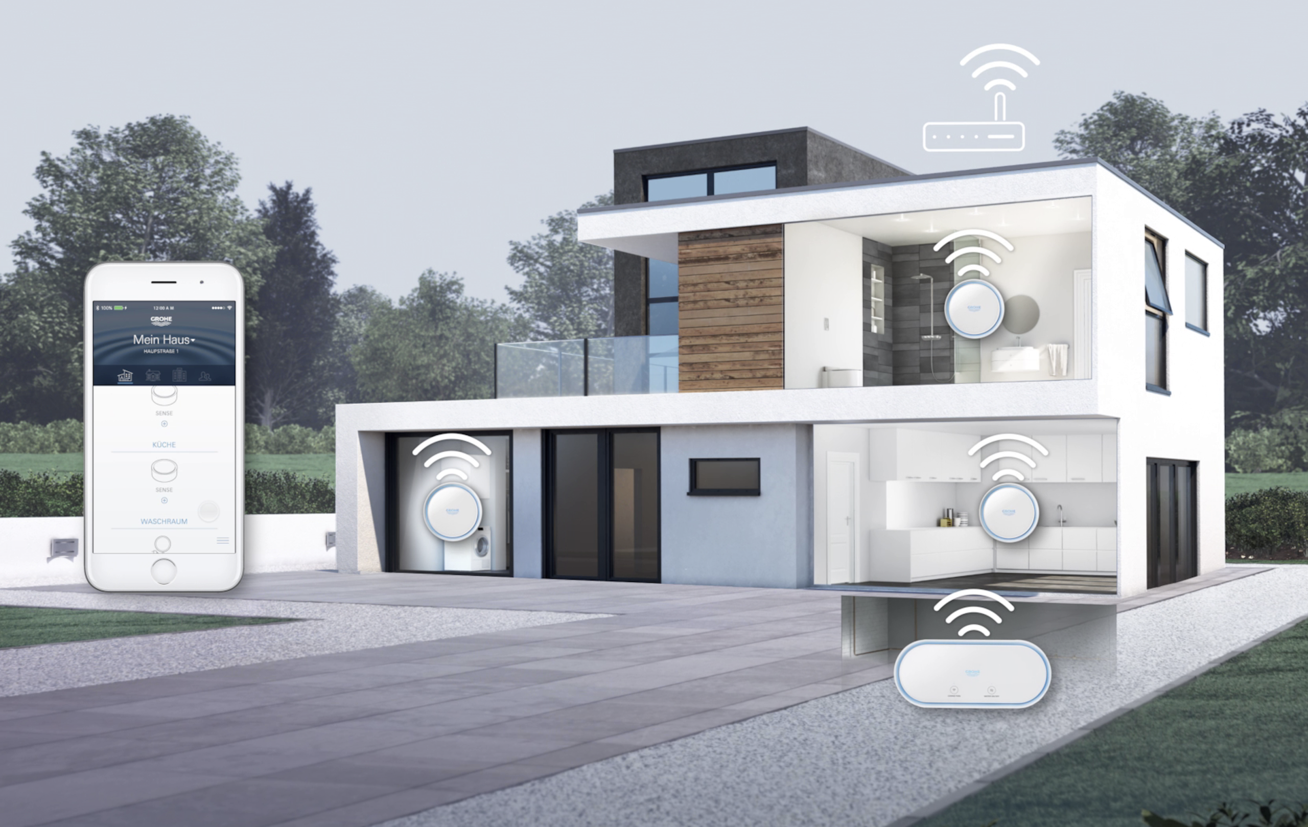 Eén op de twee mensen krijgt in zijn leven te maken met een lekkage of leidingwaterbreuk, vervolgt Van Dis. “Meestal levert dat grote problemen op, nog los van de hoeveelheid water die onnodig wegspoelt. Met onze Smart Home oplossingen wordt erger voorkomen. Grohe Sense is een sensor die constateert of er water op de vloer ligt en meet tegelijk de temperatuur en luchtvochtigheid. De sensor wordt draadloos gekoppeld aan het Wifi netwerk en geeft de gebruiker een seintje op zijn mobiele telefoon bij onheil. Ideaal naast een wasmachine of in de keuken bijvoorbeeld. Zie het als een rookmelder voor water. Met Sense Guard gaan we nog een stapje verder, waarbij tevens een module wordt geplaatst naast de hoofdafsluiter in de meterkast, ook verbonden met het Wifi netwerk. Bij een breuk in de leiding of een melding van de gekoppelde sensoren wordt het water afgesloten. Sense Guard houdt ook rekening met drukverandering of exceptioneel waterverbruik. Het totale waterverbruik is bovendien inzichtelijk in de app. En zo maken we de cirkel rond: inzicht in het waterverbruik werkt besparen in de hand.”